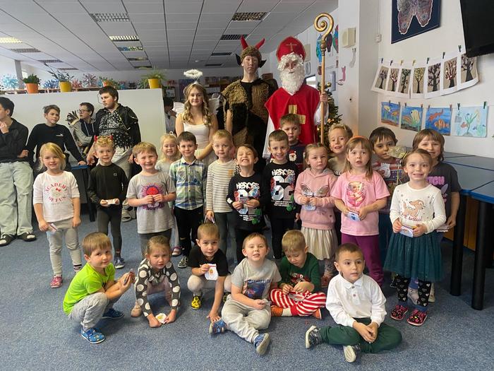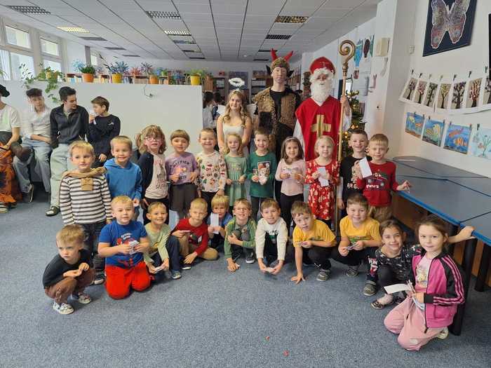 Po úspěšném splnění všech úkolů čekalo na děti v knihovně překvapení – čert, Mikuláš a anděl. Děti přicházely po skupinkách, zazpívaly písničku a za odměnu dostaly svou Mikulášskou nadílku.
