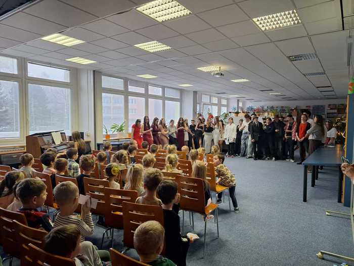 Na samý závěr si pro nás žáci základní školy připravili krásné hudební vystoupení. Společně jsme si všichni zazpívali oblíbenou píseň Rolničky, rolničky, která navodila tu pravou předvánoční atmosféru.