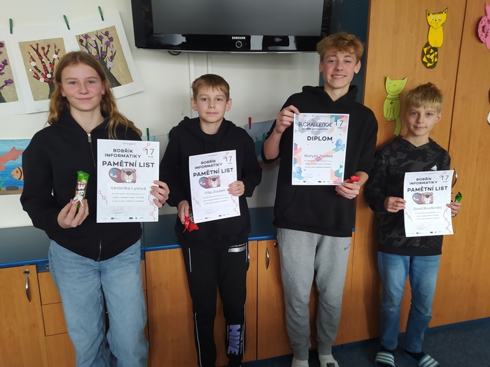 Žáci 3. – 9. ročníků měli letos v hodinách Informatiky tradičně možnost řešit 12 úloh a jejich správným vyřešením si „ulovit bobříka informatiky“. Z celkového počtu 307 soutěžících bylo letos