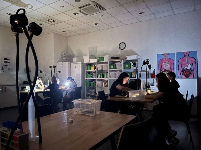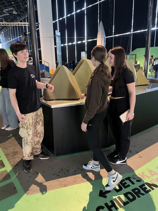 Poté se přesunuli do zábavného vědeckého parku VIDA. Žáci si zde prohlédli a vyzkoušeli interaktivní exponáty a navštívili světelnou laboratoř. Podívali se, co se skrývalo uvnitř svítící tyčinky, malovali světelný obrázek baterkou i laserem. Rozzářil se i drcený cukr, obálka nebo chemické sklo. Zjistili, co je to bioluminiscence a proč světlušky v noci svítí. Na závěr si obě třídy zahrály únikovou hru VIDA! Escape game, kde pomocí fyzikálních, chemických a matematických úkolů všichni získali heslo k tajemné černé skříňce.