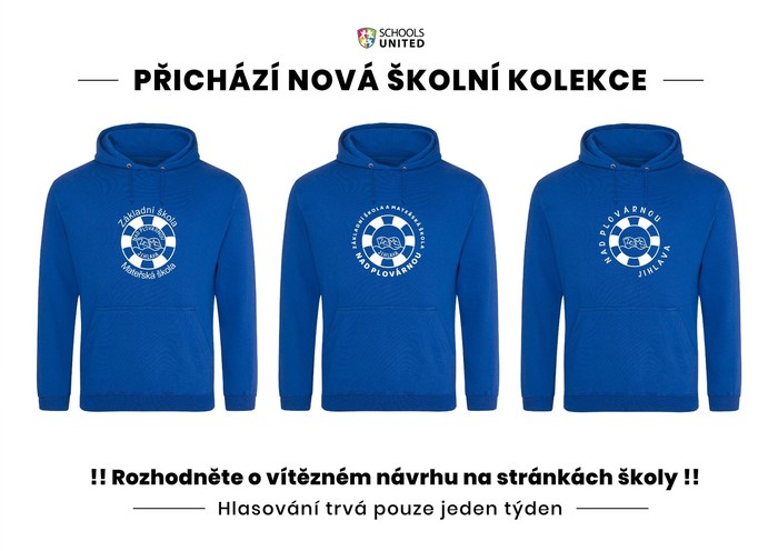 Do školy přichází nová školní kolekce oblečení a jste to právě Vy, kdo rozhodne o její podobě! Hlasujte do 31.3.2023 o tom, který ze tří motivů se Vám líbí nejvíce. Vítězný motiv potom použijeme na vytvoření celé kolekce, kde najdete nejen mikiny a trička, ale i tepláky, batohy, čepice a další kousky.