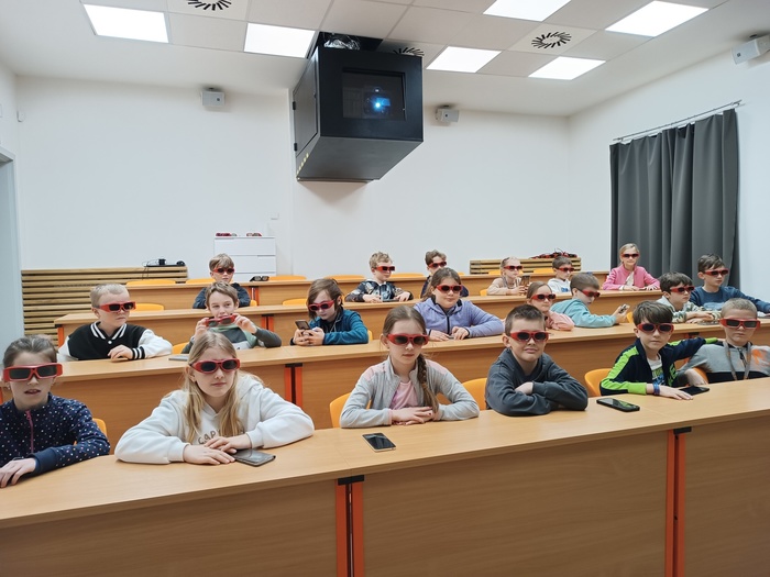 V pátek 28.3. 2025 se třídy 3.A a 3.B vydaly do planetária v Havlíčkově Brodě. Zde děti zhlédly 3D film Putování s dinosaury a v planetáriu se nejdříve seznámily s noční oblohou a souhvězdími, která na ní mohou pozorovat. Poté na ně již čekal animovaný film Polaris. Hlavní hrdinové tučňák z jižního pólu a lední medvěd z opačného konce zeměkoule se vydávají do vesmíru, aby rozluštili záhadu polárních nocí. Cestou ještě navštíví Mars a Saturn. Oba pořady se dětem líbily.