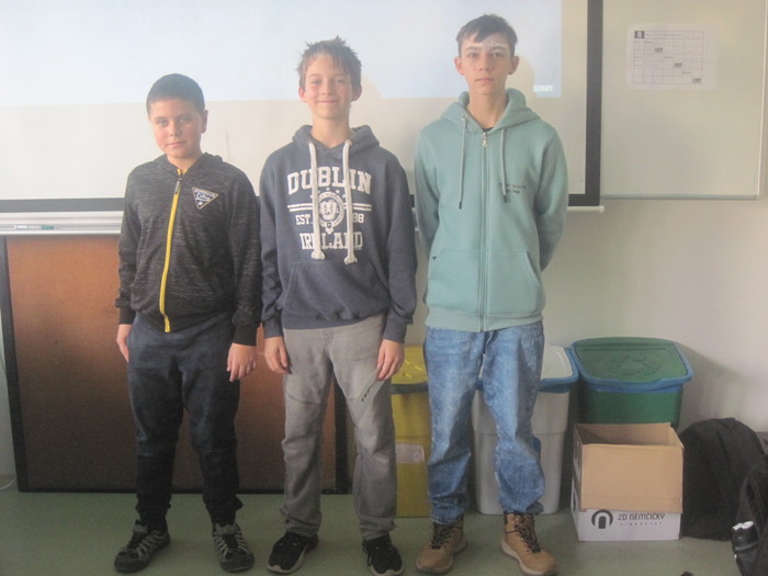 "Kocouři"- A. Oberreiter (7.A), A. Přidal (7.A), Š. Hurda (7.A - kapitán)