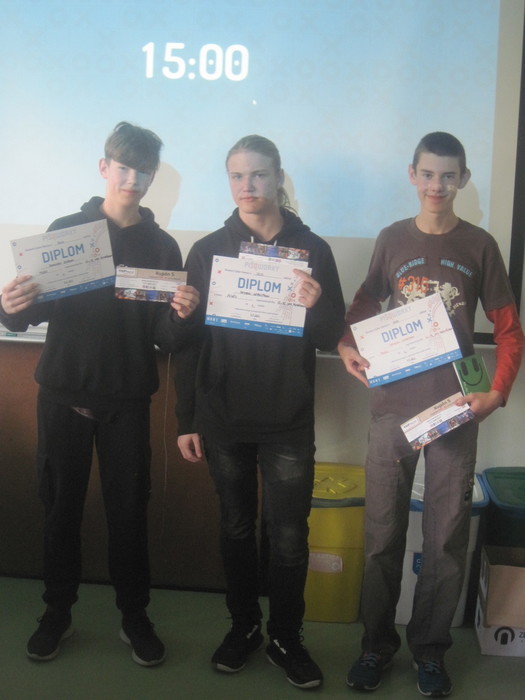 "Feláci"- D. Buček (7.A), R. Svoboda (8.B), D. Netolička (8.A - kapitán)