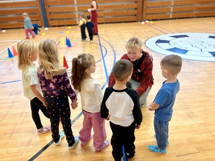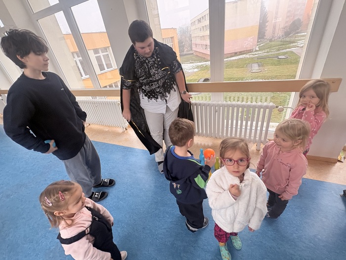 Úvod > Základní škola > Fotogalerie > Velké poděkování našim deváťákům: Z běžné hodiny Občanské výchovy vzniklo dobrodružství pro školkáčky!